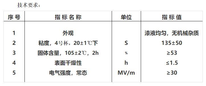产品说明:由环氧酯晾干清漆添加颜料、增稠剂、干燥剂等经研磨混合而成。具有干燥时间短、漆膜光亮、坚固、附着能力强,酸碱、油、防潮等特性。适用于电机、发电机定子及线圈的表面覆盖。热等级为F级。