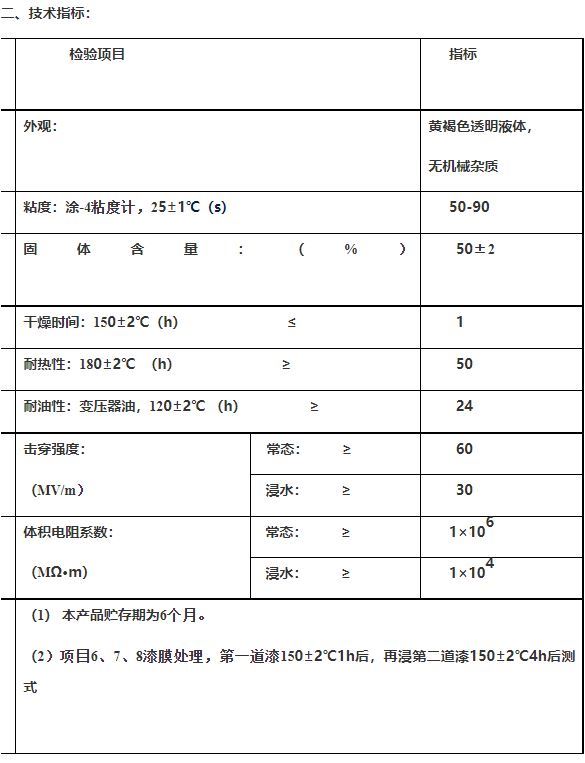 组成、性能、用途:F级丝包线漆由耐热聚酯树脂和特种环氧树脂配制而成。